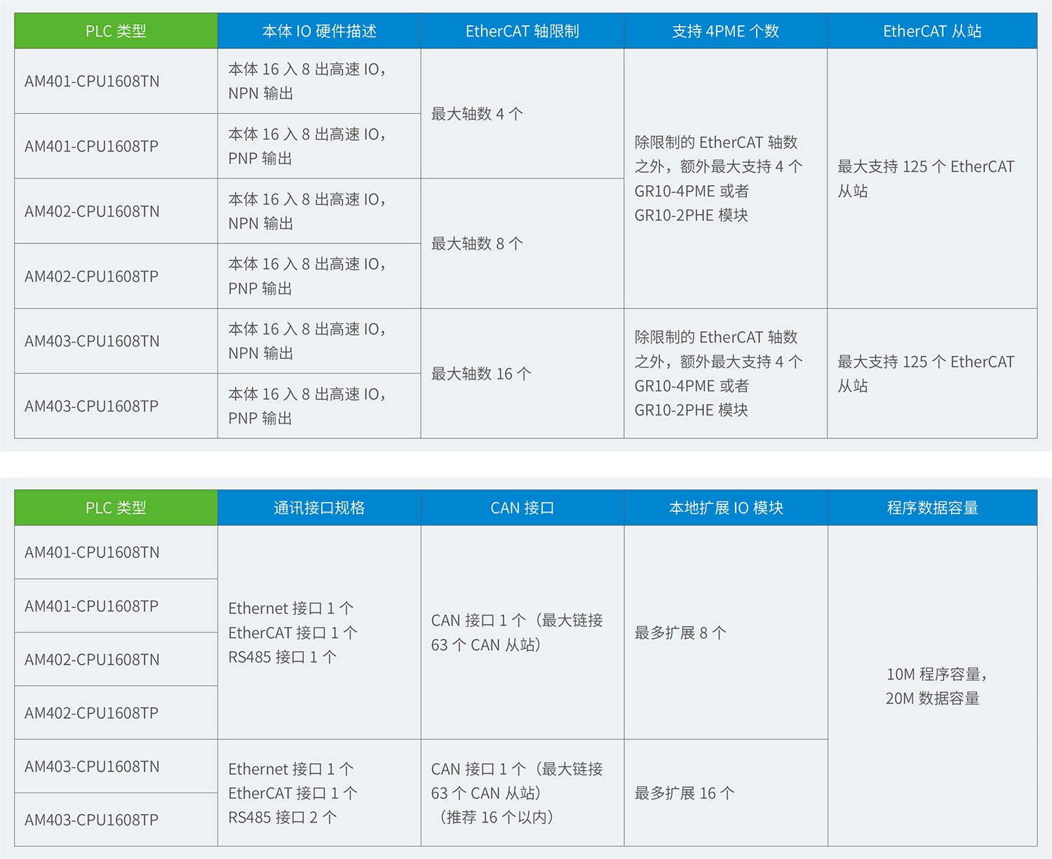 AM400 系列PLC 為經濟型高性能中型PLC,完全符合IEC-61131-3 模型規范。支持IL,LD,SFC,CFC,ST 等編程語言,同時提供各種應用庫,包括基于EtherCAT 的運動控制庫,運動控制包括點對點運動,凸輪運動,插補運動等,另外還包括CANopen 通信庫,文件處理,字符串處理,以太網通信,485 通信等庫。利用該平臺可以簡單,快捷,穩定地搭建所需要的設備應用程序。