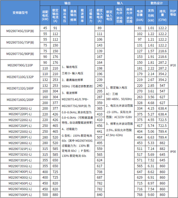 MD290系列變頻器型號與技術(shù)數(shù)據(jù):