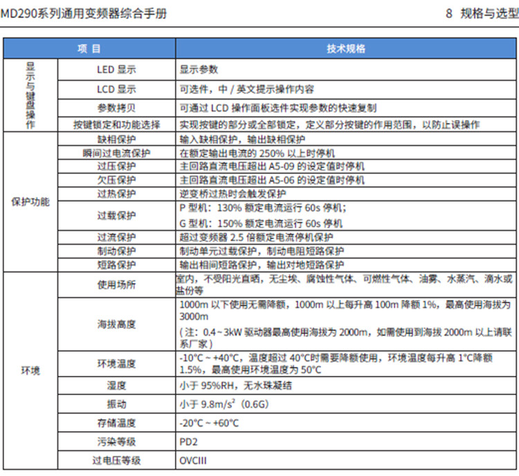 MD290系列變頻器技術(shù)規(guī)格參數(shù):