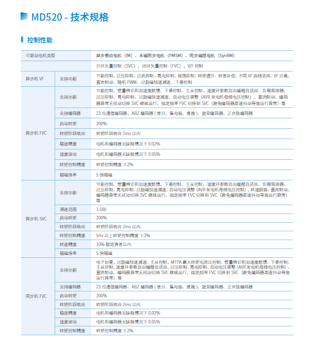 異步電機(jī)(IM),同步電機(jī)(SM),同步磁阻電機(jī)(SynRM)均可匹配,助力用戶設(shè)備節(jié)能升級改造