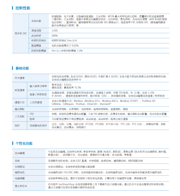 支持功能安全STO,故障跛行,位置控制,抱閘控制,自由編程,張力應(yīng)用,風(fēng)機(jī)/水泵等應(yīng)用,令變頻器適用于各種應(yīng)用場景